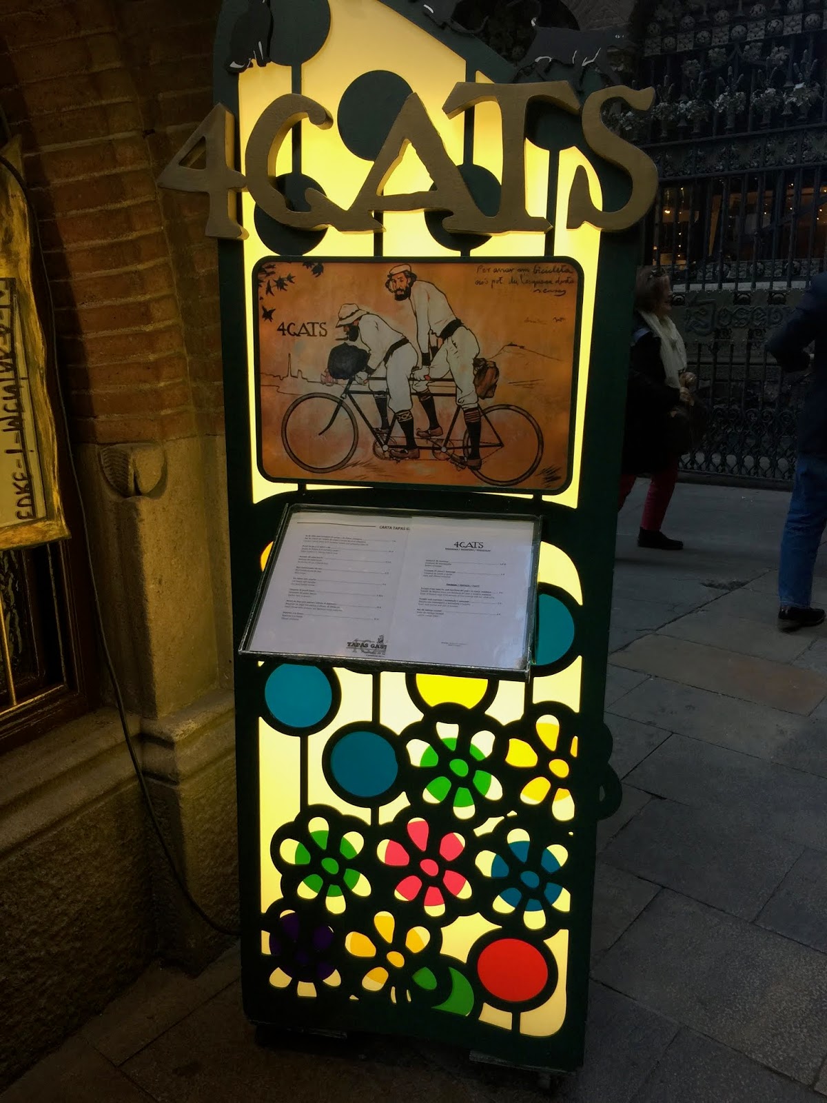 四隻貓4CATS餐廳,這家餐廳出名是因為畢卡索幫這家餐廳畫了招牌,網路上評論正反都有,因此僅打卡。